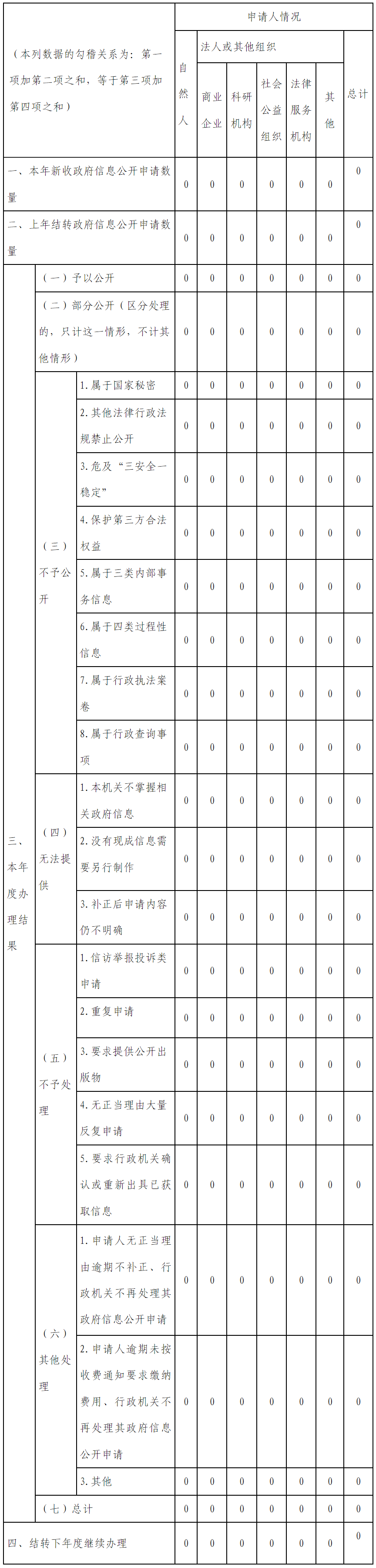 三、收到和处理政府信息公开申请情况