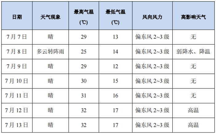 一、未来一周(7月7日-7月13日)天气趋势预报