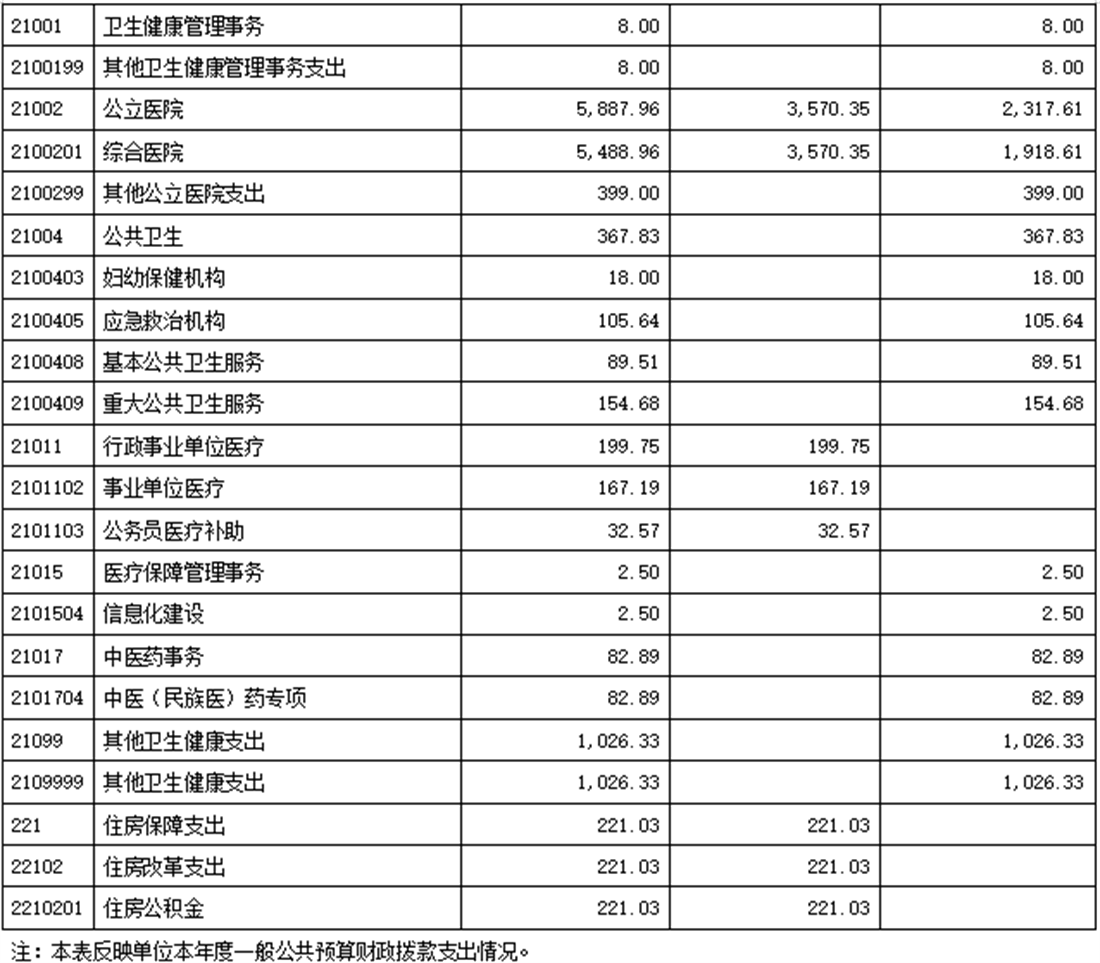 2024年度一般公共预算财政拨款支出8114.53万元,主要用于以下方面:社会保障和就业支出318.23万元,占3.92%;卫生健康支出7575.27万元,占93.35%;住房保障支出221.03万元,占2.72%。