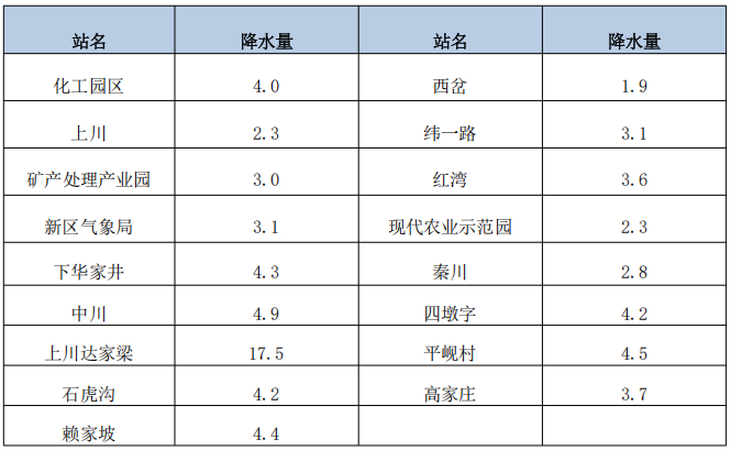 表1:兰州新区6月23日14时至24日08时降水量(单位:毫米)