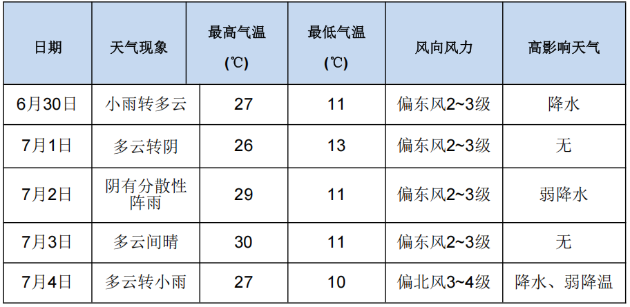 预计今天夜间至30日清晨,新区有降水天气;30日白天至7月3日,受西风槽浅槽影响,新区天气多云或阴,其中2日午后,新区有分散性阵雨;7月4至5日,受冷空气和西风槽东移,新区天气多云或阴,气温下降,其中4日夜间新区有降水天气;6日,转为偏西气流影响,新区天气多云间晴。