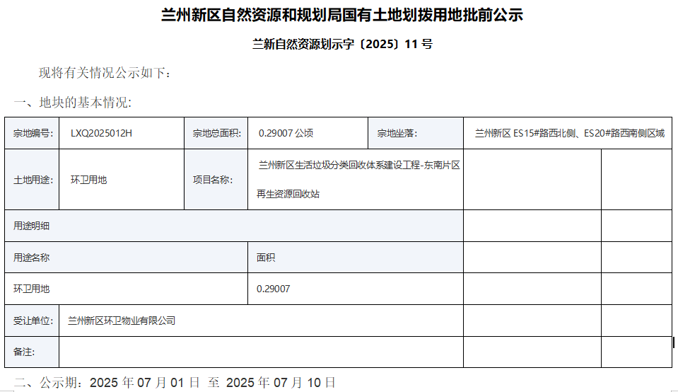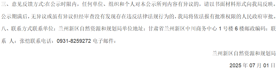 兰州新区自然资源和规划局国有土地划拨用地批前公示